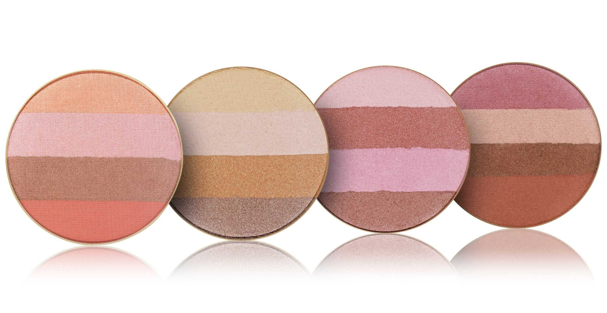 В составе – пыльца 24-каратного золота, используемая в пищевом производстве. Создает эффект золотистого свечения. Можно наносить отдельно на скулы, веки и губы или на все лицо для придания коже свежести. Четыре оттенка в одной пластине позволяют создавать макияж под любое настроение. Наносить можно в сухом виде, а также с увлажняющим спреем или гелем для волос для создания яркого образа. Новый формат упаковки бронзатора позволяет использовать средство в комплекте с пудреницей jane iredale. Активные ингредиенты