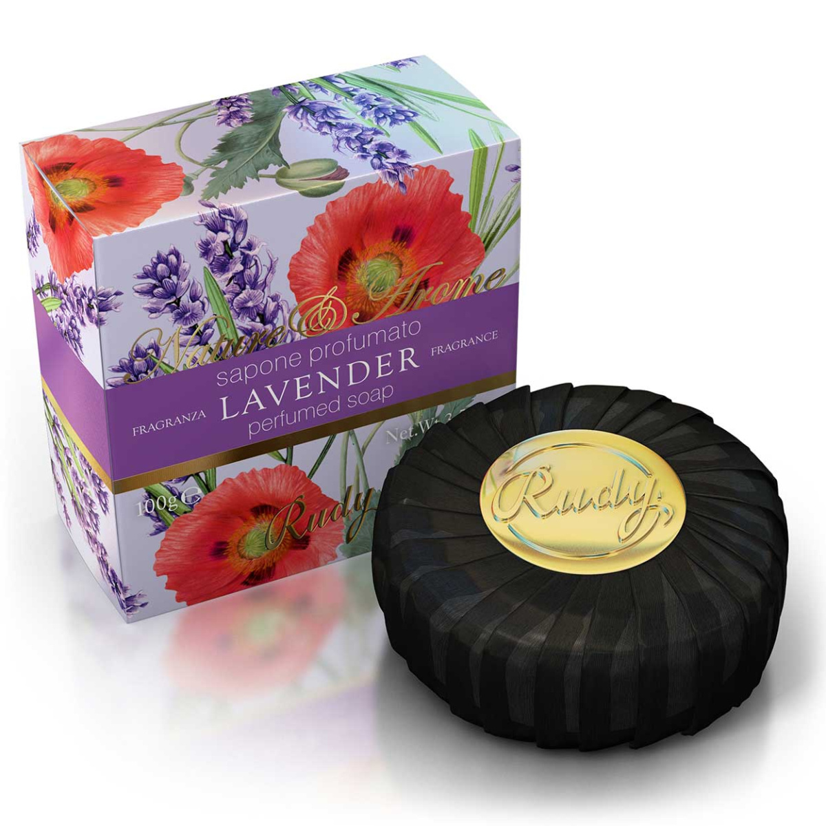 Rudy Profumi представляет Вашему вниманию коллекцию Nature & Arome — утончённую линию средств по уходу за телом и руками, вдохновлённую спокойствием средиземноморских пейзажей и классическими парфюмерными аккордами. Кусковое мыло Nature & Arome Lavender — это ароматный брусок для ежедневного очищения, воплощающий атмосферу тихого лавандового поля на закате.
